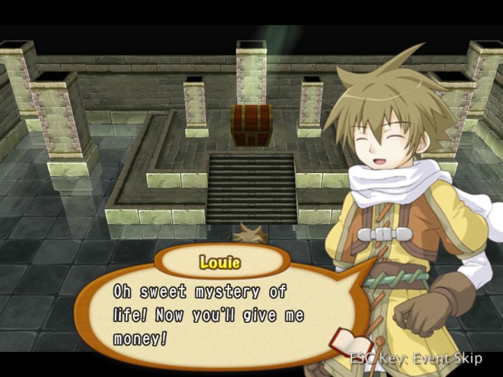 C: Louie doesn’t have much of a rep, the only reason he’s agreed to come with us is cos he coulnd’t get into the Advenutres guild without passing some tests but he didn’t have the money and items to do it, so we’re helping him out in return for him helping us out.