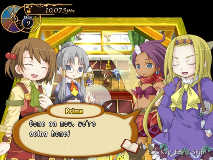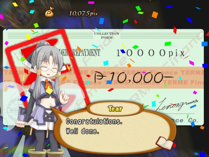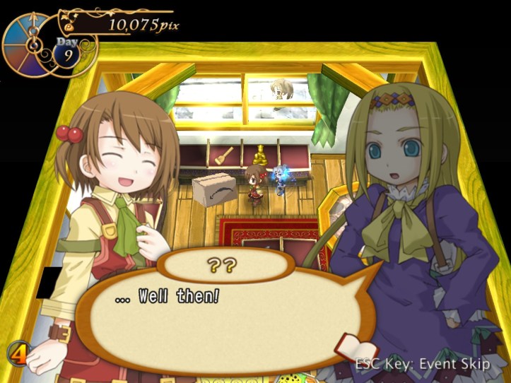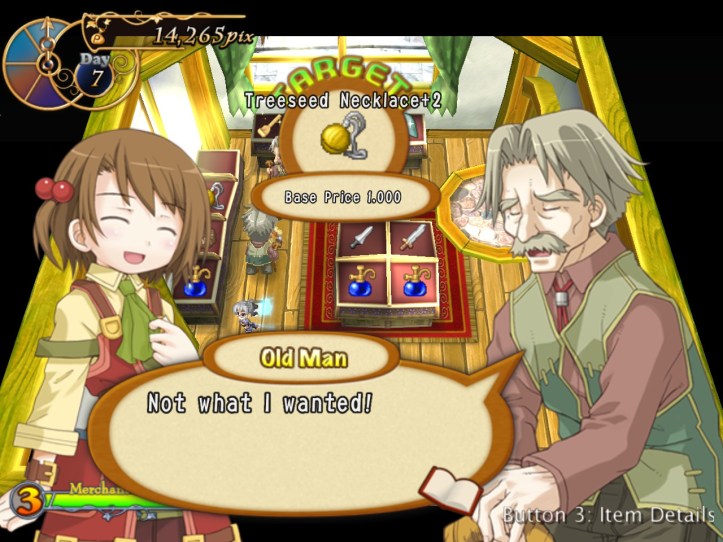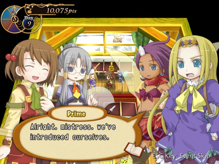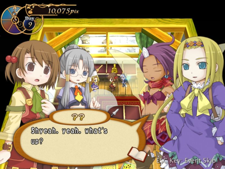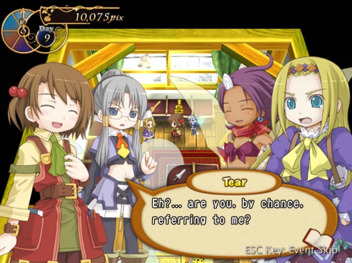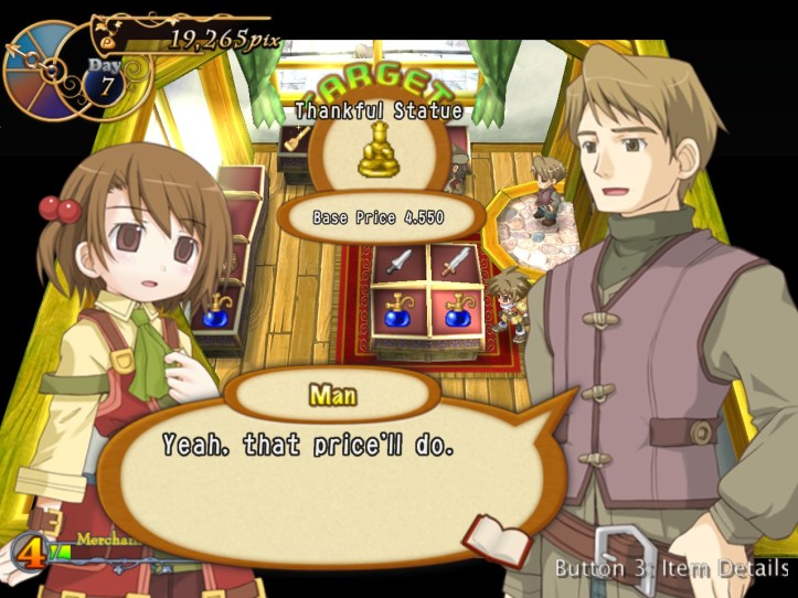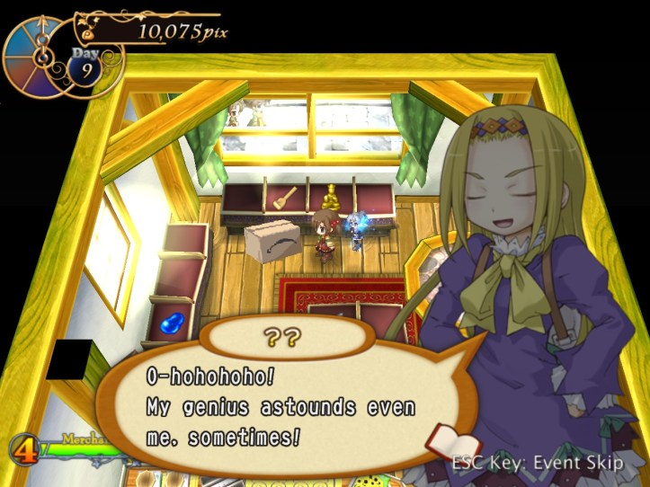 […] the end of the last session of Recettear, we’d just managed to put up the requisite 10,000 pix for our first week’s payment. Big […]