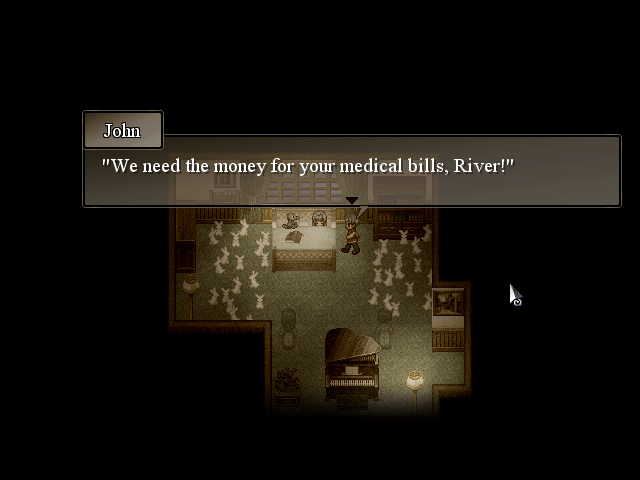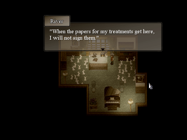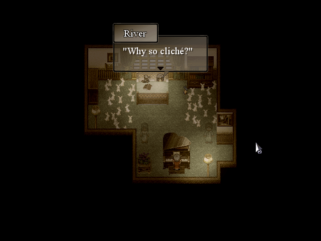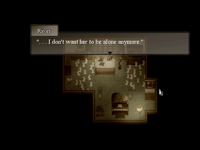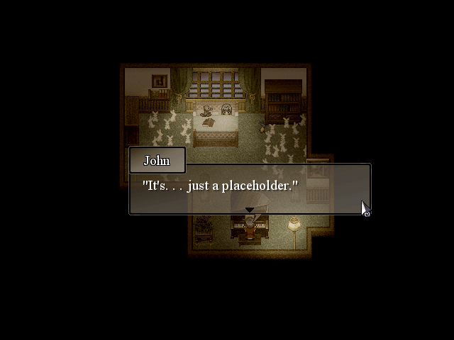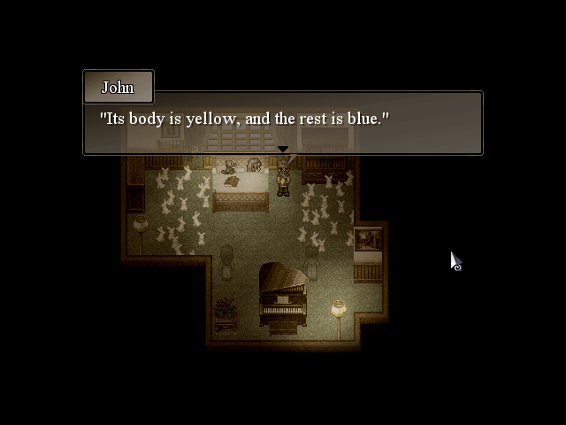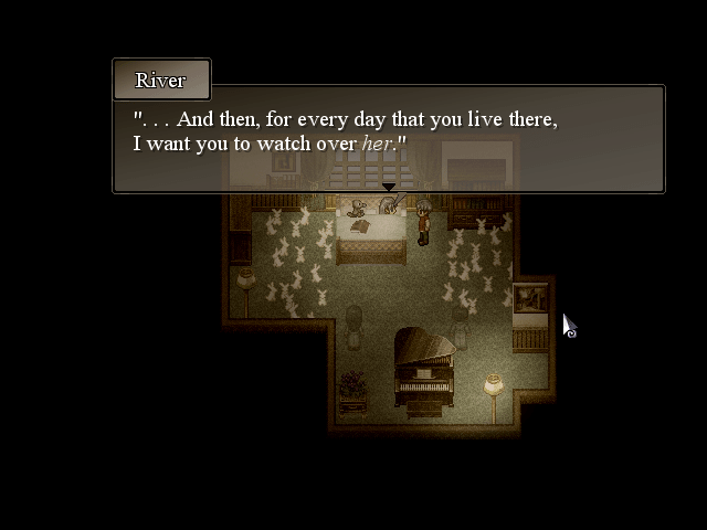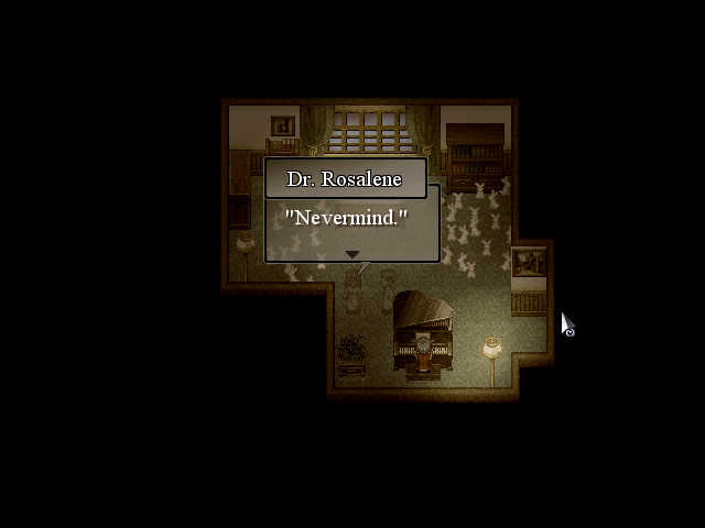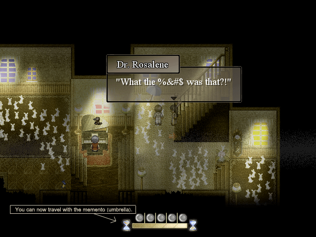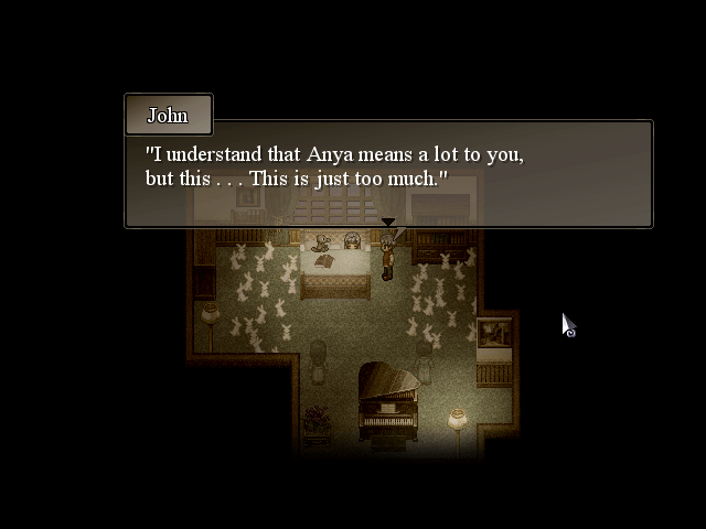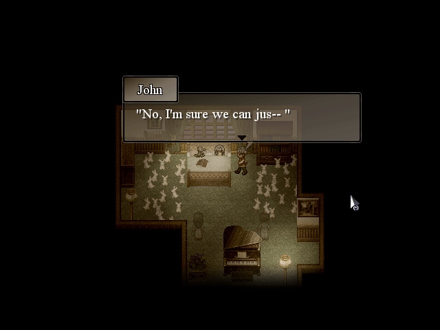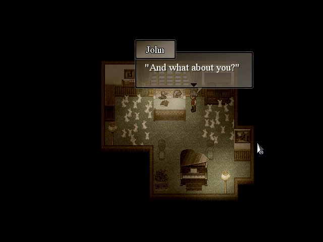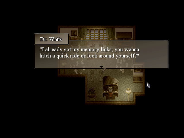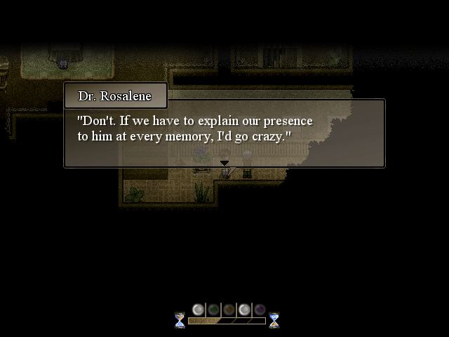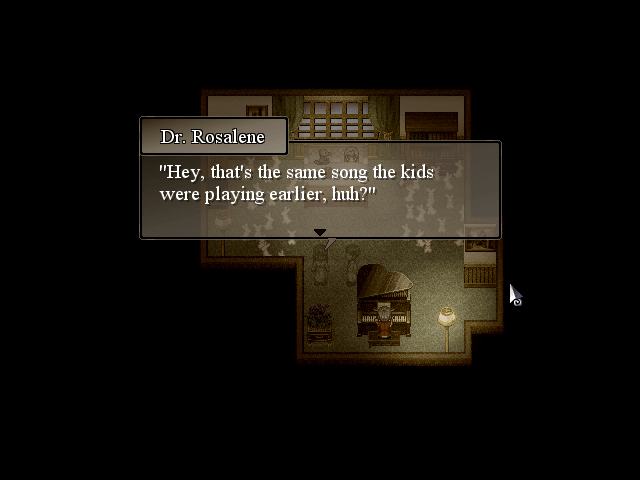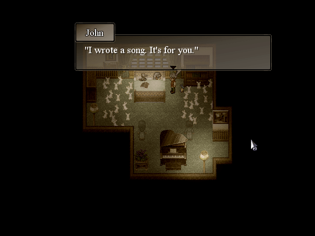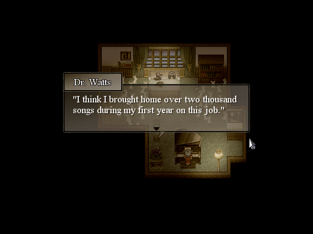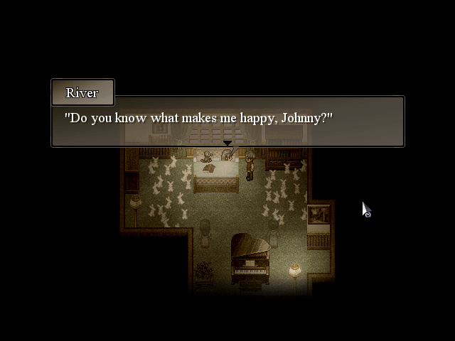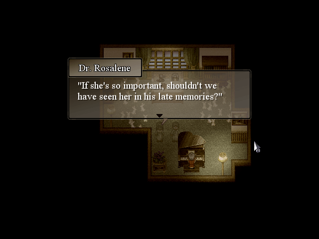 Johnny stops playing abruptly; Rosalene reassures Neil that it must just be a part of the memory. They watch uncertainly for a moment, then Johnny hammers a random cluster of notes, prompting Neil to reiterate that the guy might not be totally stable. Rosalene tries to keep things on track by giving us an objective: find a memento in this memory which we can use to hop to an earlier one.