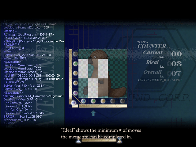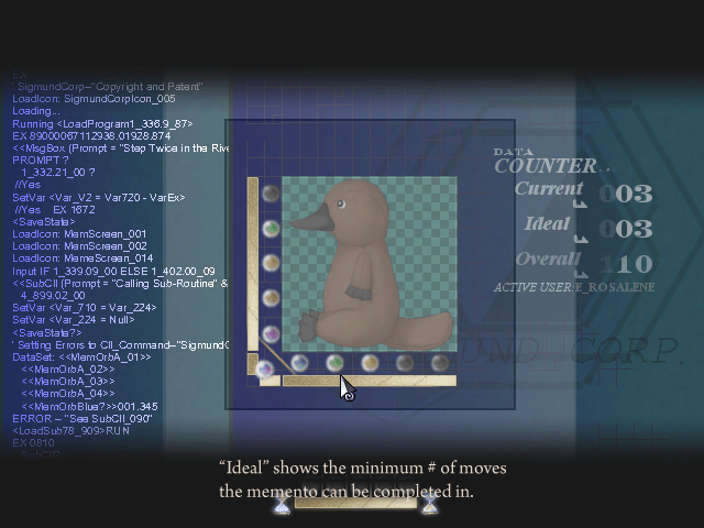 To solve the puzzle, I flip the diagonal and then the centre rows of both the X and Y axes. I’m not sure what this gameplay mechanic is supposed to represent Neil or Rosalene actually doing to the memento in order to prepare it, but I’ll roll with it.