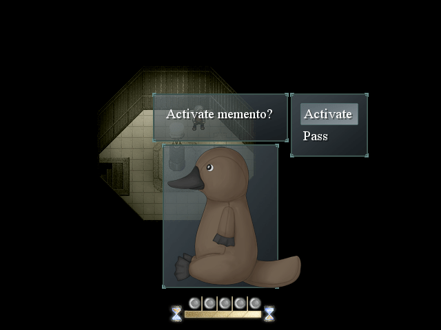 We hop through the platypus and come out… well. The track that plays during this scene is ‘Born A Stranger’, and I really do recommend listening to the OST as you read through this because it might just be the best example I’ve ever come across of a game’s soundtrack really adding so much to the impact of the story. (I’m actually not sure that it is exactly the same track as in the video; it’s a very slightly different key and there’s a constant heartbeat sound underneath, but the melody is the same.) This is another scene I’m just going to put up in full, and I don’t imagine it’ll be the last. Something tells me this game is going to get emotional pretty fast.