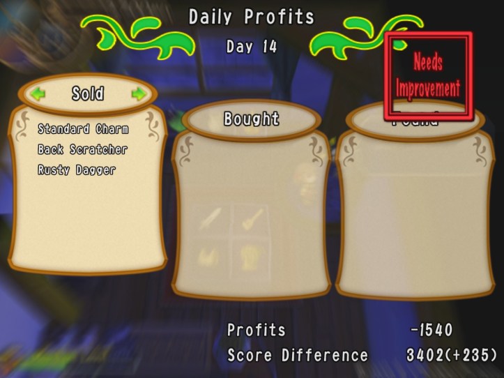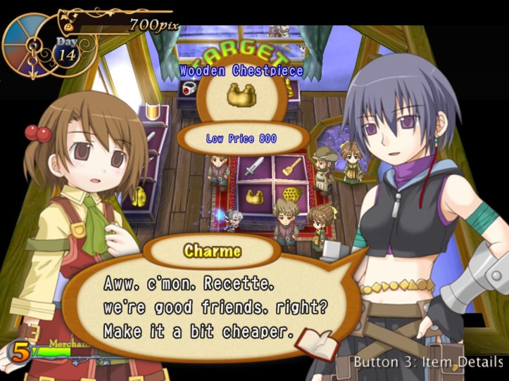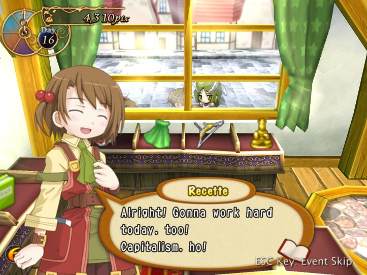 I don’t know whether it was meeting Charme or feeling like I’m now blasting through each day at a rate of knots, but I’m feeling pretty motivated to keep playing Recettear, so… let’s just get straight back into it!