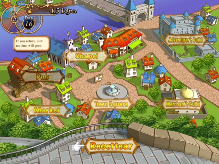 The town square and chapel are both flashing; I check out the chapel, as we’ve already spent a fair bit of time in the square of late.