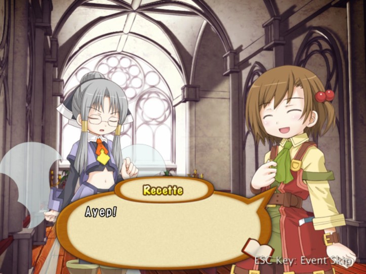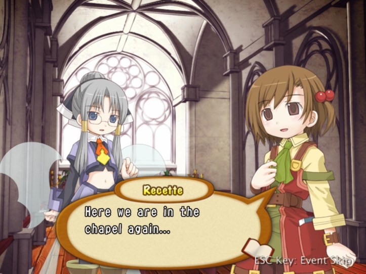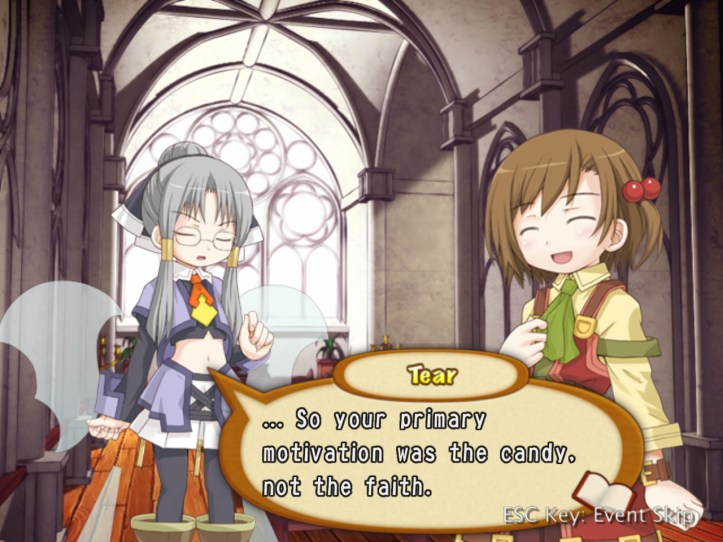 Tear tells Recette that she wouldn’t have pegged her as the pious type; Recette clears matters up by explaining that the church used to give out free candy.