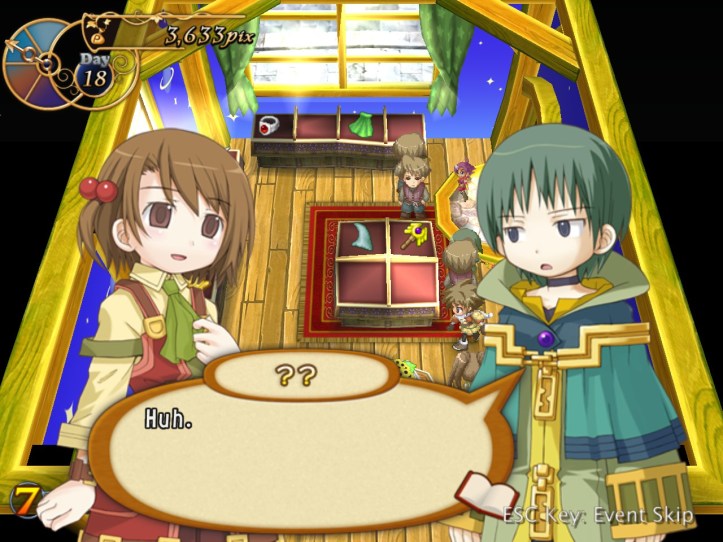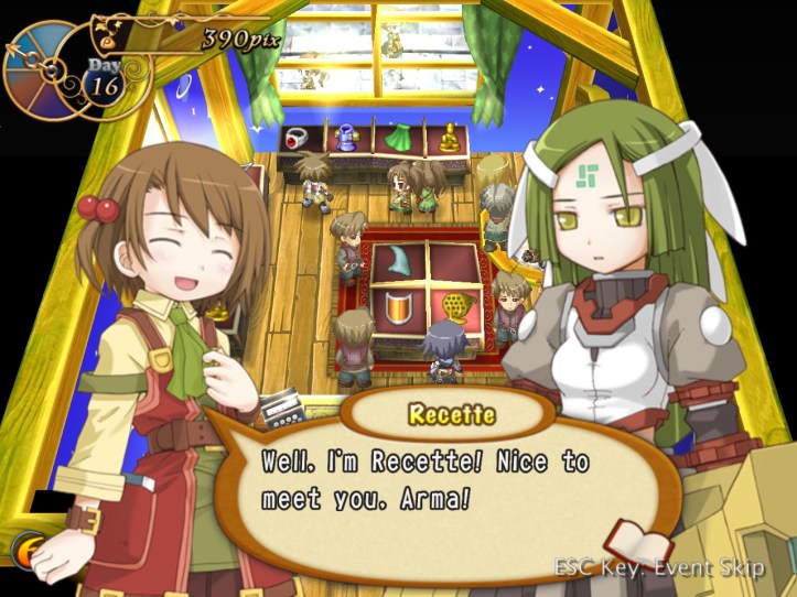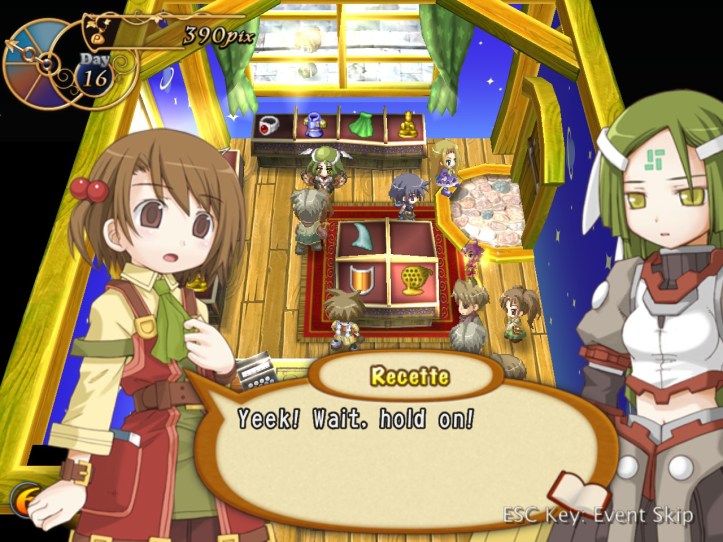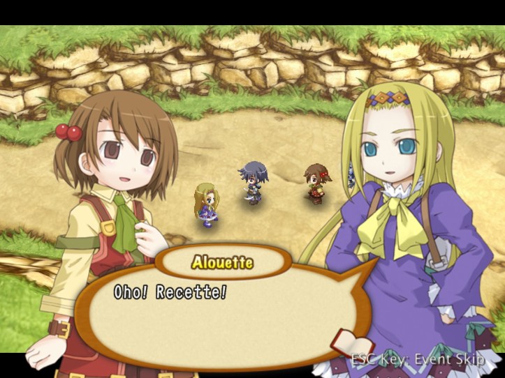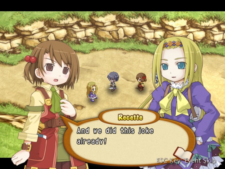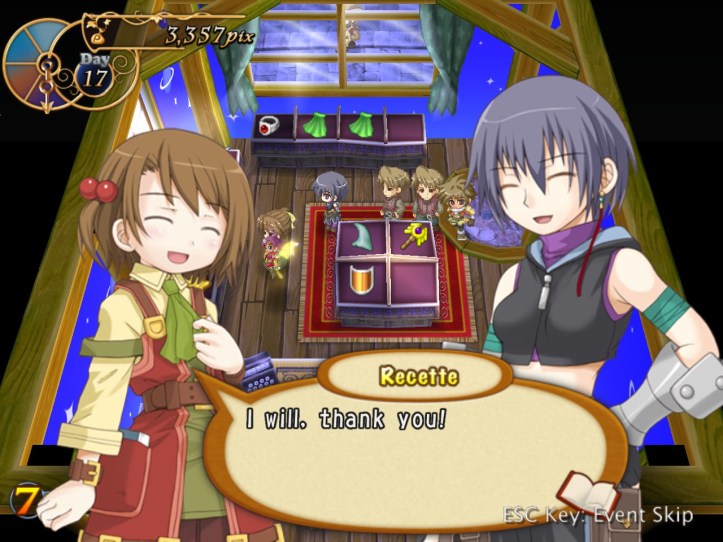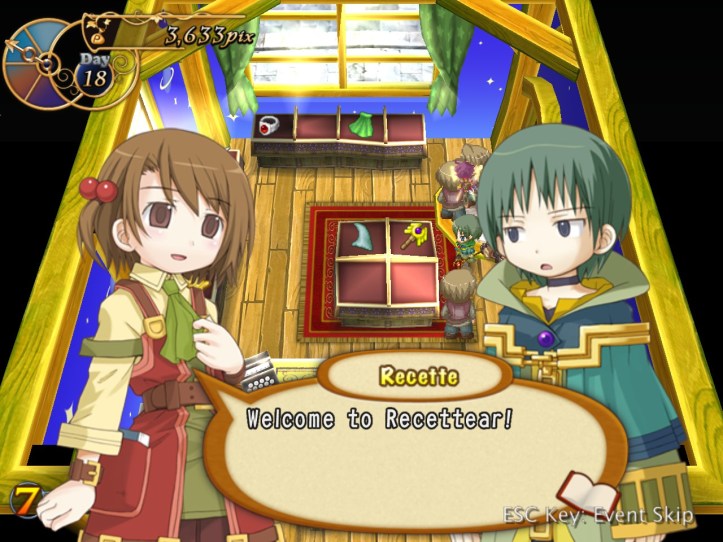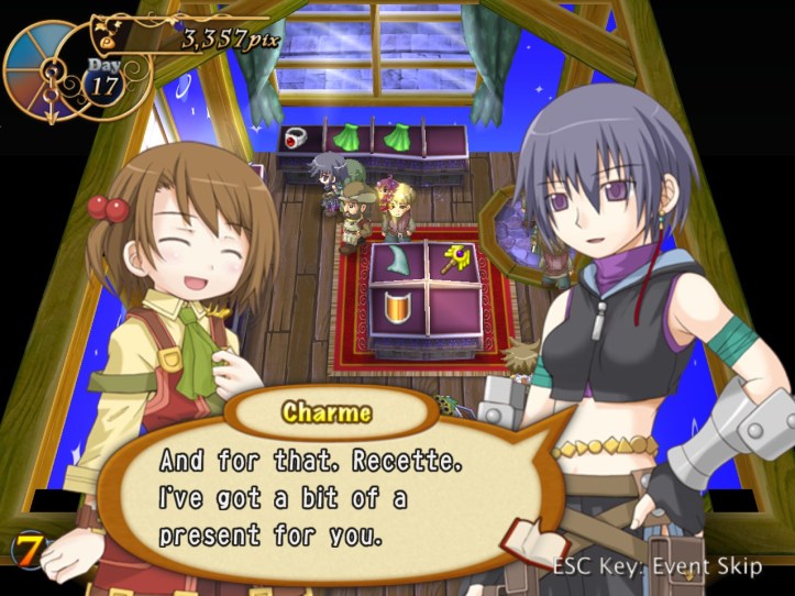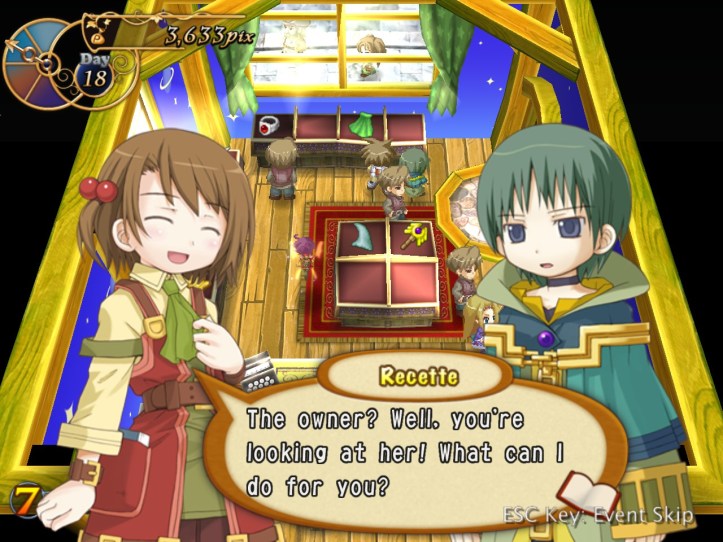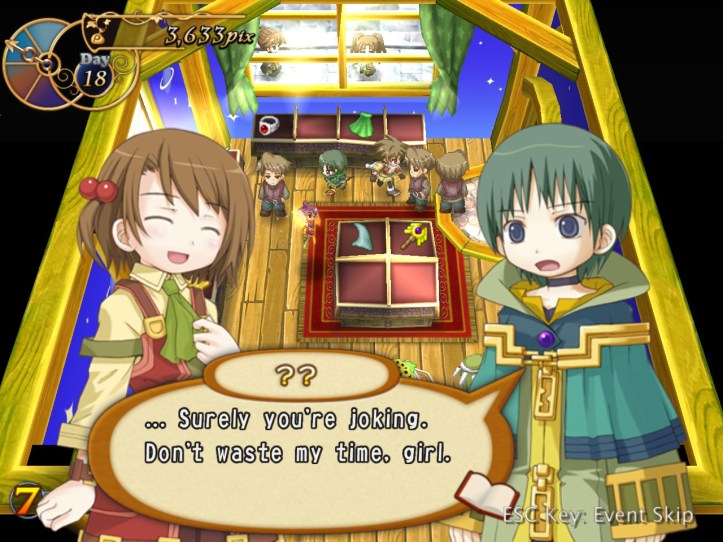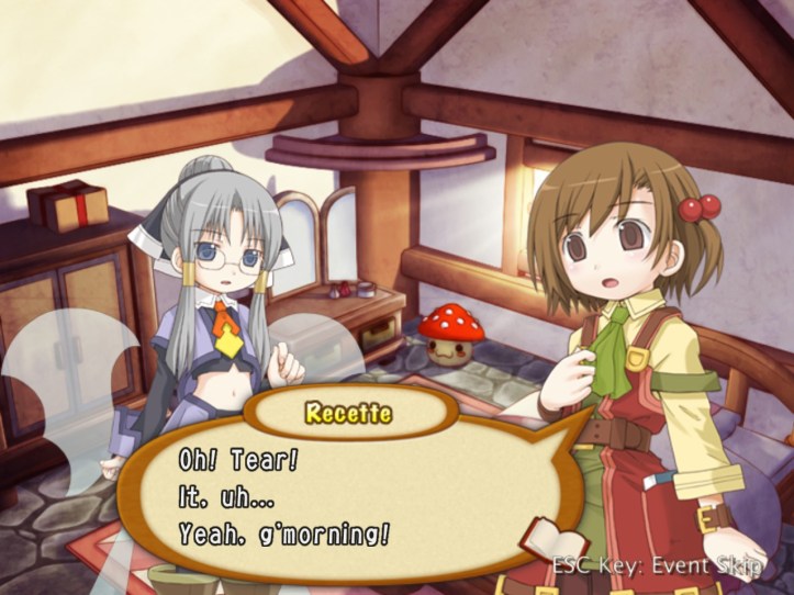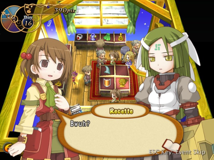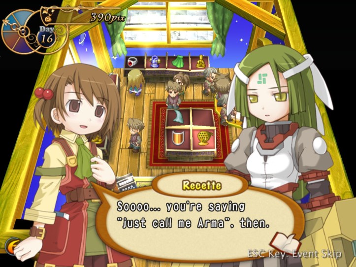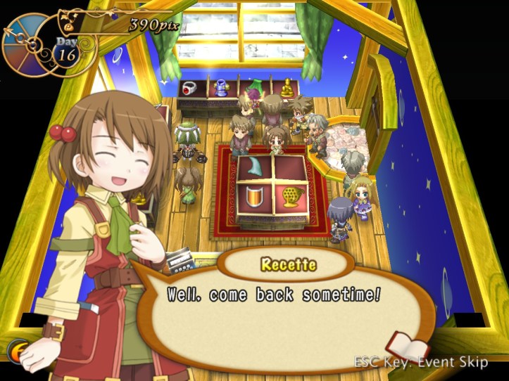 The girls are re-treading the conversation from the beginning of the game, with Recette seeming to half-remember a dream about the store doing well before we got the game over.