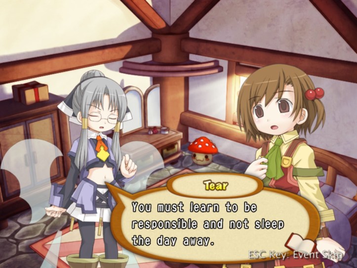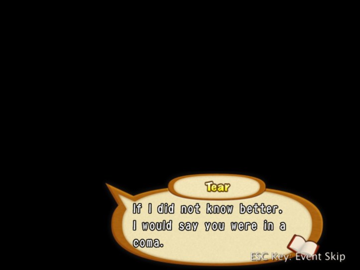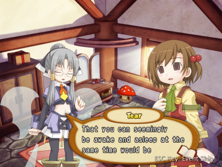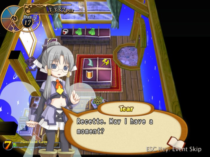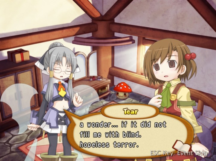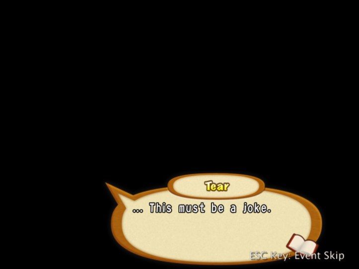 If nothing else, I do at least manage to hit level 7. Tear then asks for a word, which is never a good sign…