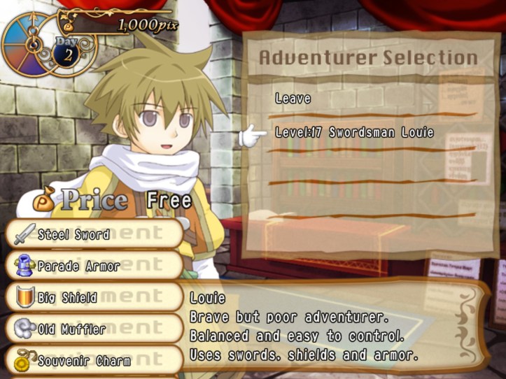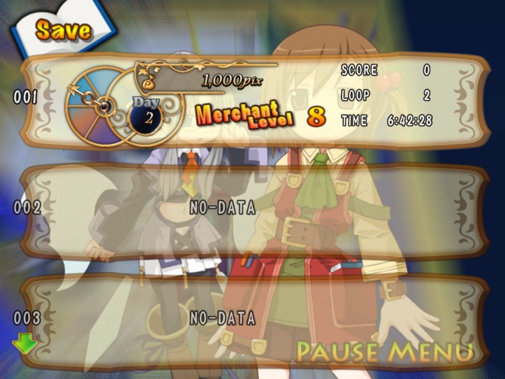 A quick check at the Adventurer’s Guild reveals that I still have Louie at the same level as before, but no Charme. Guess I’ll have to unlock her again. The pause menu reveals that my save file is now on Loop 2.