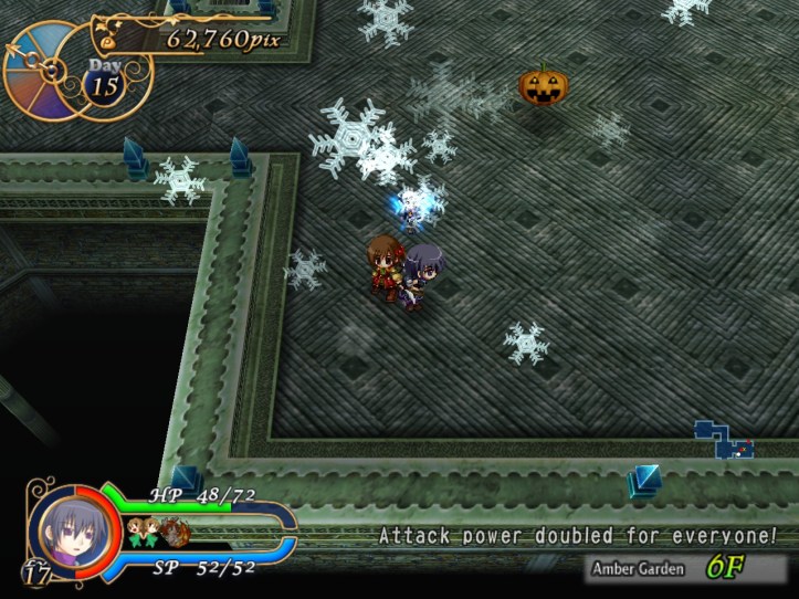 - Since I’m so far ahead, I take Charme to the Amber Garden on day 7. It’s much more trouble than I’d like to admit, and when I run into a whole load of enemies and traps on a floor where enemy attack power is doubled, I’m screwed. I think maybe I should just stick with old Louie until we get somebody else. Sorry, Charme; I’m just not good with her!