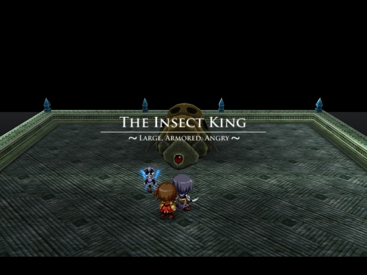 - Somehow (it’s touch-and-go on multiple occasions, trust me) we make it to the boss: a giant wiggly insect. He’s actually not that hard; he just sort of wanders after us, occasionally rolling to do some pretty hefty damage, but it’s easily avoided. Suffice to say: he goes DOWN. I almost toy with the idea of just going straight to the next set of floors, but decide against it.