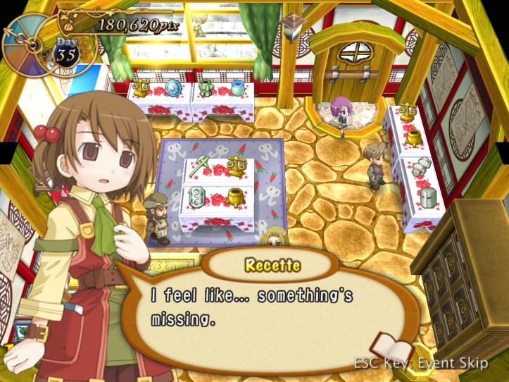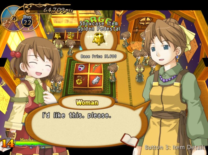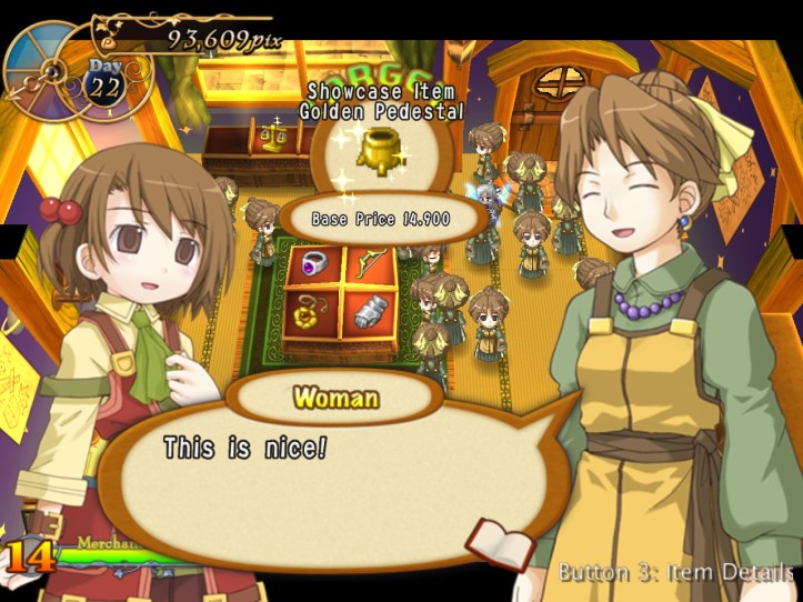 Something weird happens on the day my payment’s due: women suddenly come in great numbers! (I’m quoting the game on that, by the way. Recettear‘s words, not mine.)
