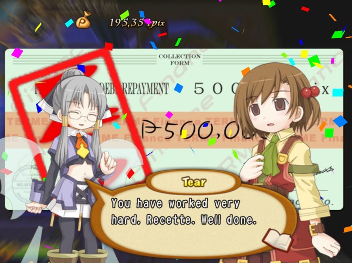 I don’t want it to be over! I don’t think Recette does, either. I mean, she now has a very successful business that won’t just be draining money every week, so she’s set for life, but more to the point… this might be farewell between her and Tear.