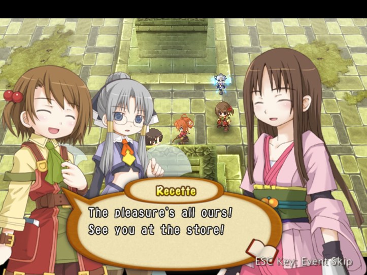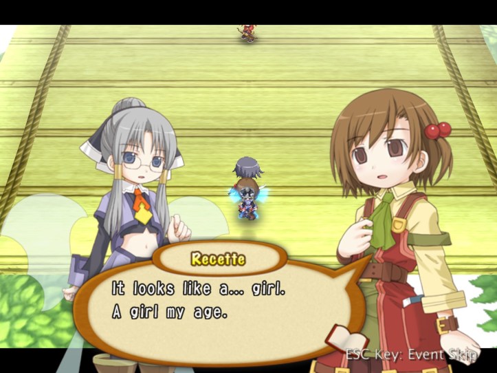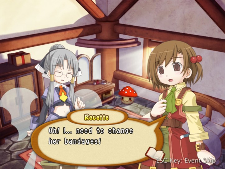Recette’s concerned that we might have actually hurt the poor kid; we bring her back to town, finding some medicine in a convenient chest.