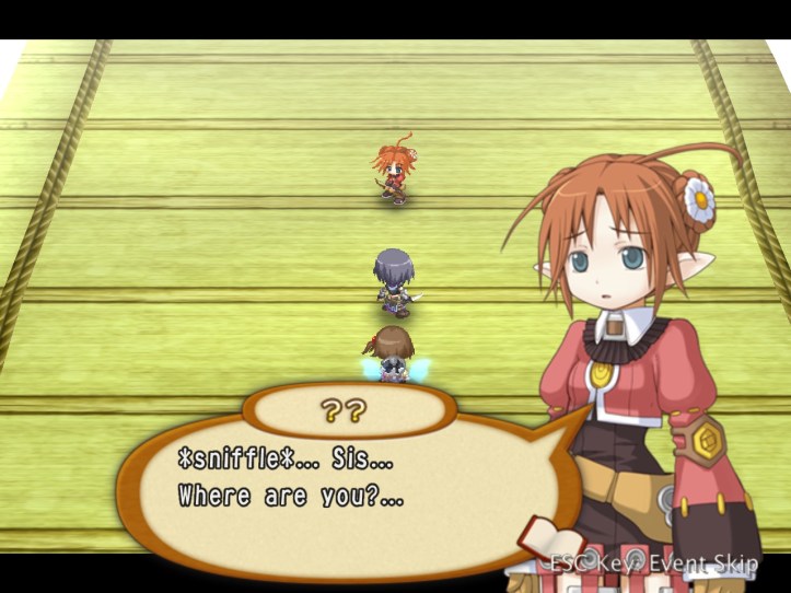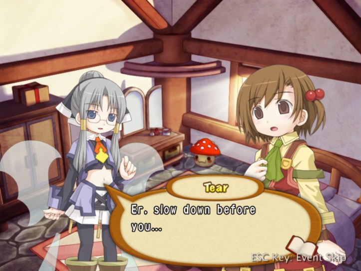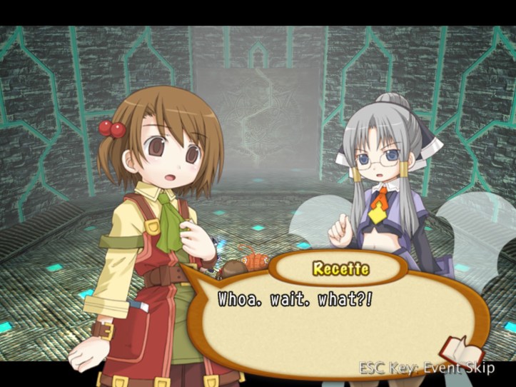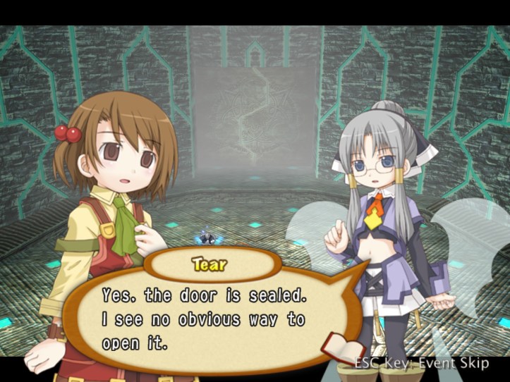 The next boss we encounter is this young girl who’s crying and looking for her sister. Naturally, Recette wants to try to help her, though Tear’s wise enough to be a bit suspicious of a lone girl so deep in the dungeons.
