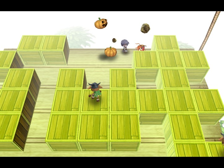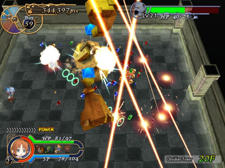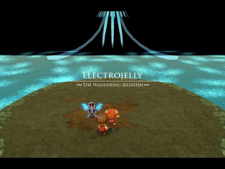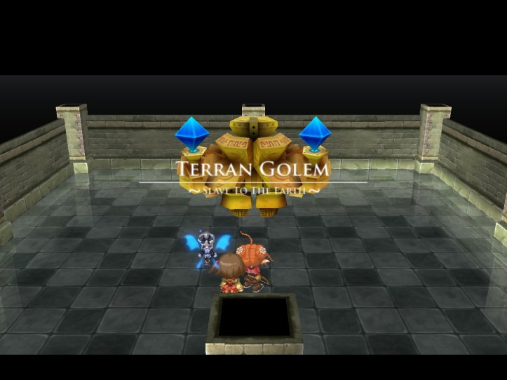 The boss is the Terran Golem, who summons little Easter Island head-like things that shoot very annoying streams of… something or other. This one turns into a bit of a damage race, because both the Golem and Tielle are hard hitters who are too slow to avoid the others’ attacks! Luckily, it’s a race I win.