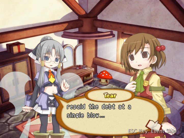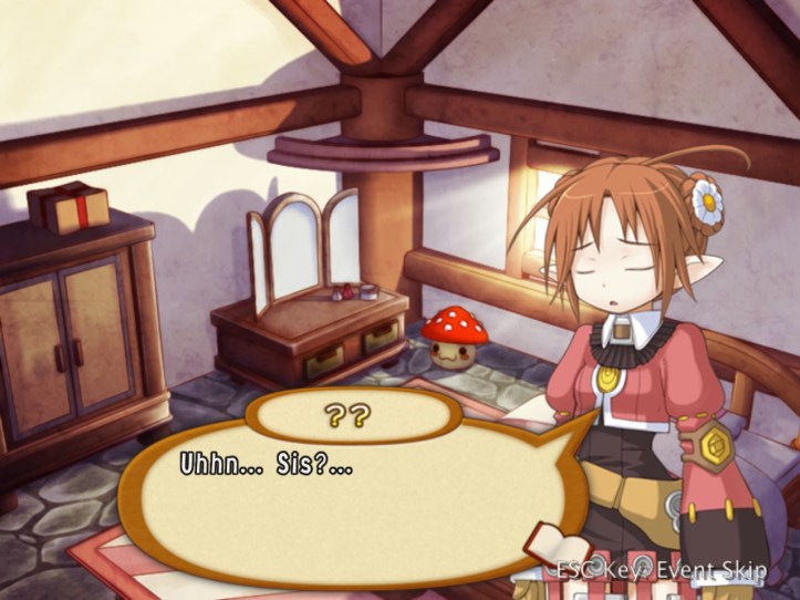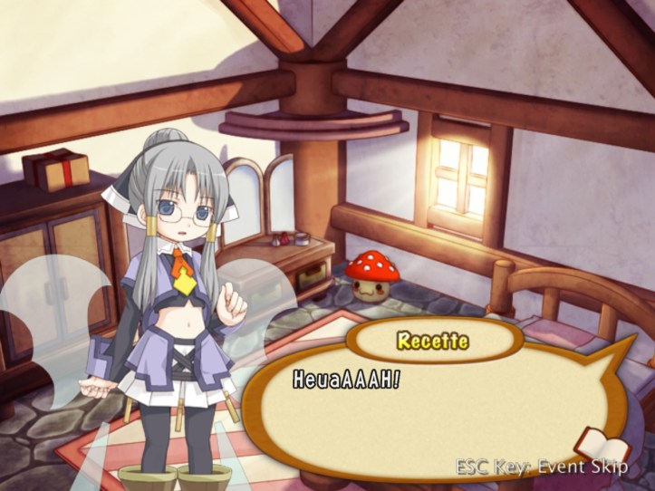 Recette explains that this girl tried to fight us, so we kicked her butt. It’s understandable, I think. Elfy isn’t too upset about it, just being surprised and a bit flattered that we used the super-valuable elf medicine to help her feel better from all those wounds… that we gave her.