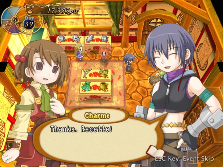 Now that we’re done with the main story of Recettear, it’s time to finish up in the dungeons. Just a note before we do so: I haven’t been using a walkthrough or anything like that for any of this playthrough and I don’t intend to start now, so I may well miss unlockable adventurers and that sort of thing, but I’m not going for full completion so I’m okay with that.