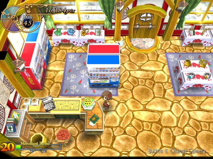 On hitting level 20, I can expand the store once again, making it absolutely enormous! I don’t even know if I’ll have enough stuff to fill these shelves! For fun, I decide to stick a second vending machine in there; I know I don’t need to be making money at all at this point, but I may as well keep it up while I’m waiting for the next dungeon to make itself apparent.