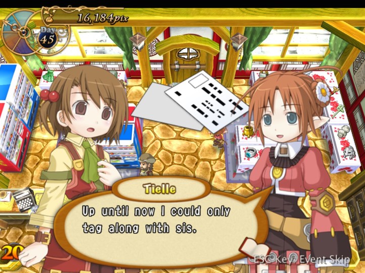 Tielle pops in the next day having received a letter from her sister, who’s… abandoned her and gone back to the elf village. Bit mean, if you ask me, but I guess elves must be a bit less familial. Anyway, Tielle decides to stay and keep trying all the sweets in town.