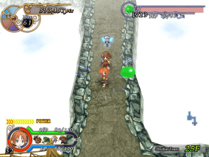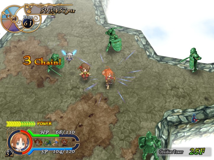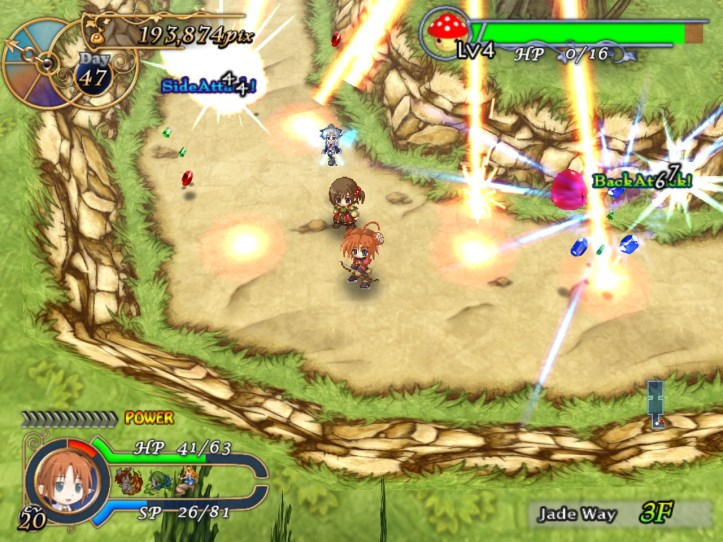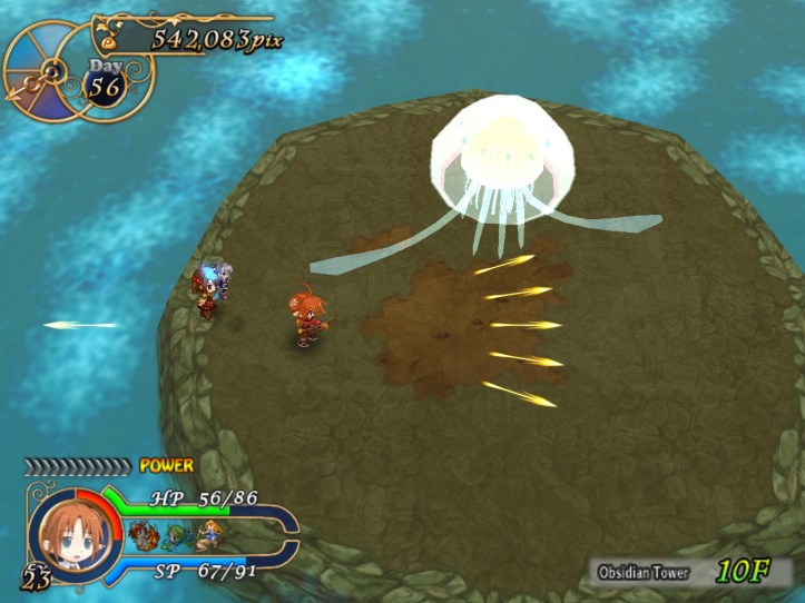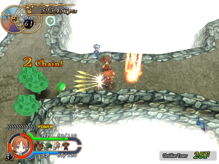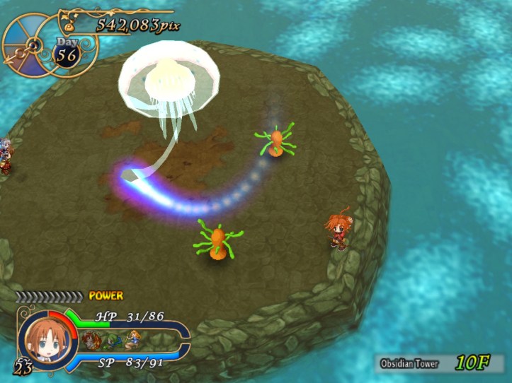 Once I’m a bit more used to her, Tielle’s not bad at all. The ranged attacks are definitely a bonus, since she can do damage at a distance without using up SP and therefore doesn’t have to worry about getting hit too much. Good thing, too, because she can’t take too many hits. Y’know, I still think she might be worth investing in; if I can get the hang of using her, she might be a very handy adventurer indeed.