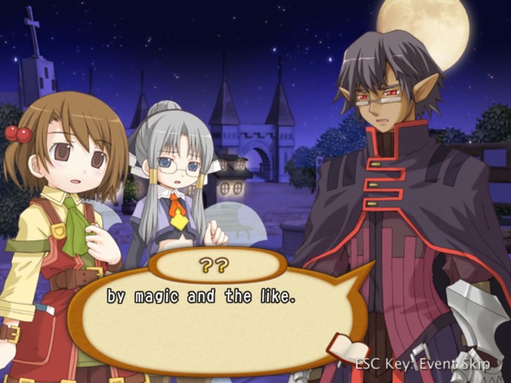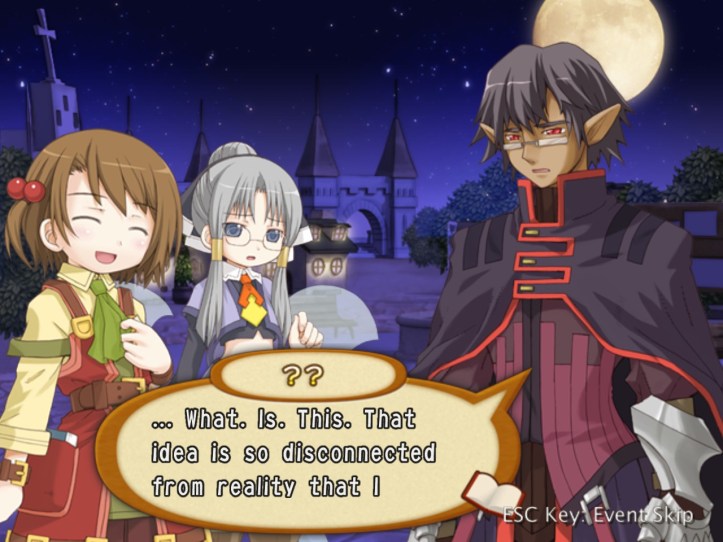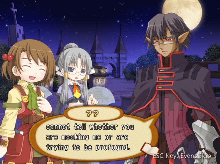 Okay, this guy’s name is Griff. Griff the demon. It probably sounds more menacing in Japanese, but it just makes me think of Red vs. Blue, which isn’t intimidating at all. With a warning that the night is dangerous and we should go home, he’s off.