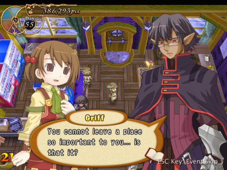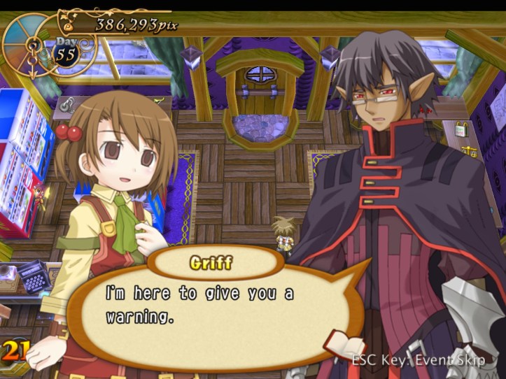 In the meantime, Euria’s working on pyramid schemes and that sort of thing. Griff pops into the store later on to… warn us?