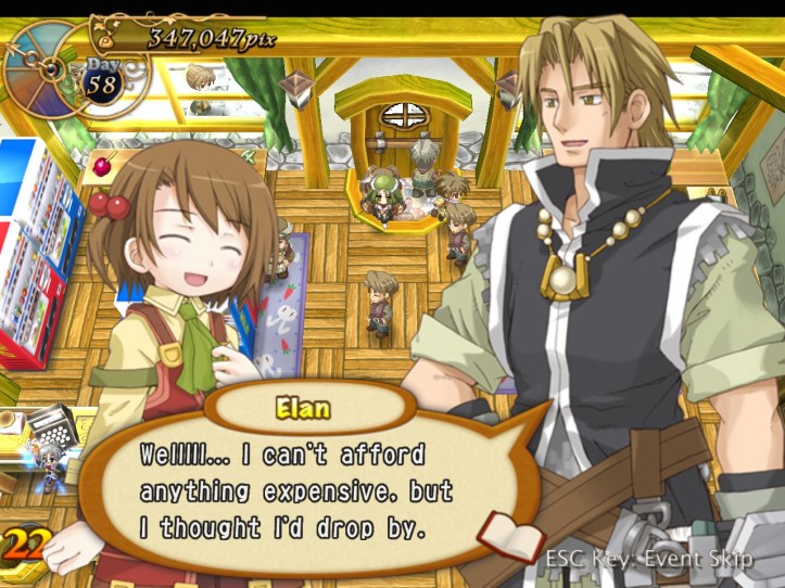 Elan pops into the store next time I open up. I think we’re probably fairly close to being able to have him as an adventurer, but I don’t know whether he’s likely to be any good or not.