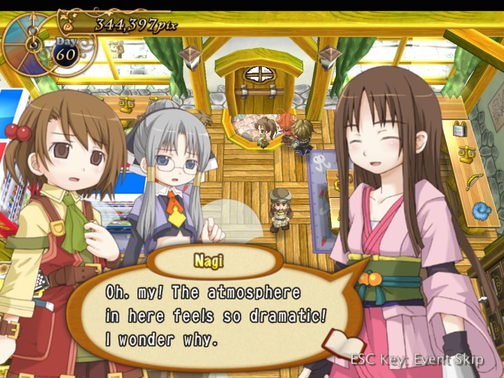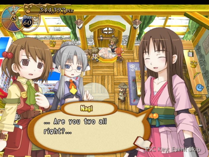 Next time we venture into the Obsidian Tower, we run into Nagi, who’s apparently ‘on her way’ to the store. Somehow, I don’t fully believe it.