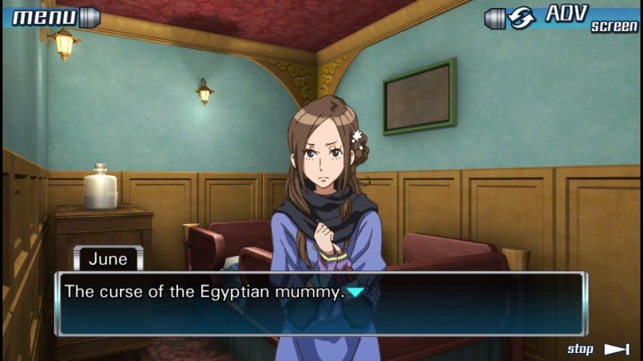(Junpei took one last look at the map, then folded it up and slid it back into his pocket. June looked up as he closed it.)