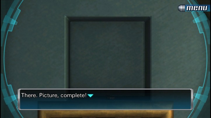 This is the room we've found ourselves in. Examining the vase prompts June to make a joke about stealing it, while the picture thing is just 'odd', as Junpei says.