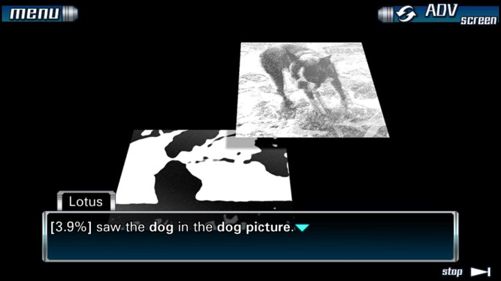 (Junpei indicated parts of the picture that looked exactly like the other parts. After 3 seconds of silence, Lotus looked at Junpei.)