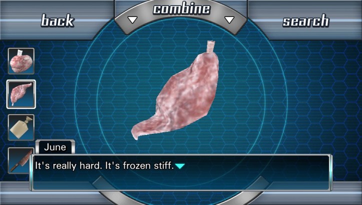 Junpei: It’s not coming out. This thing’s frozen stiff. I can’t get it out.