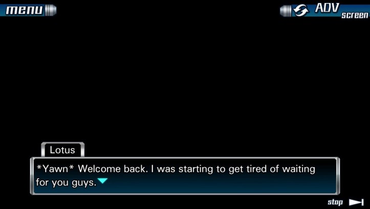 Lotus: *Yawn* Welcome back. I was starting to get tired of waiting for you guys.