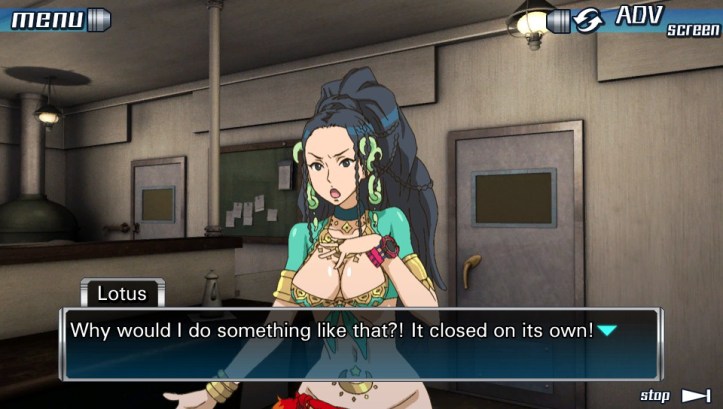 (She was right, and Junpei knew it. Without them, she’d be in very serious trouble. It seemed that an accident was the only explanation for the door’s closure. If Lotus had really wanted to kill them, all she would have had to do was bar the door from the outside…