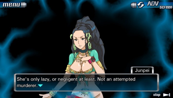 The most she was guilty of was laziness, or negligence, not attempted murder. Junpei swallowed his anger, and did his best to apologize.)